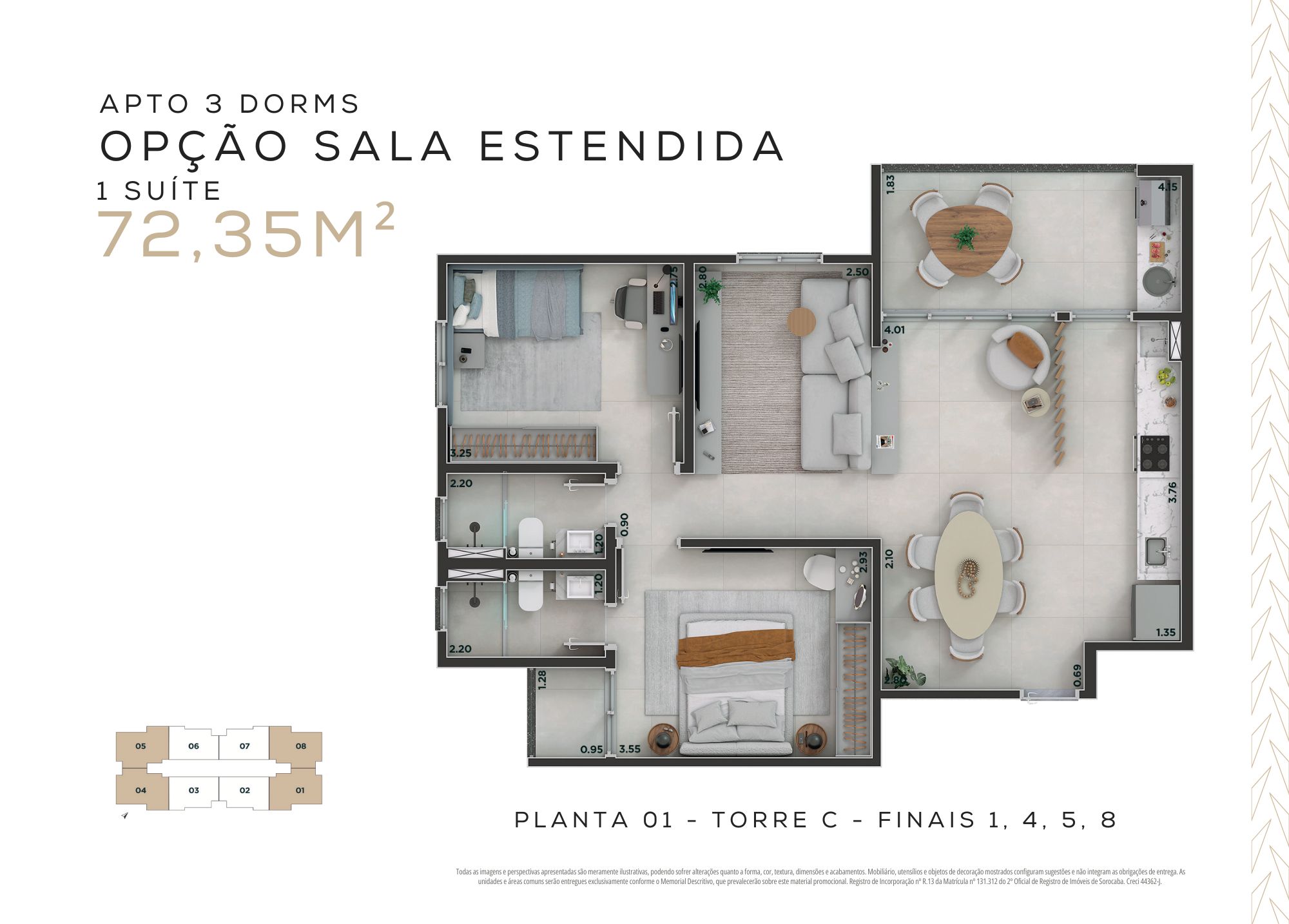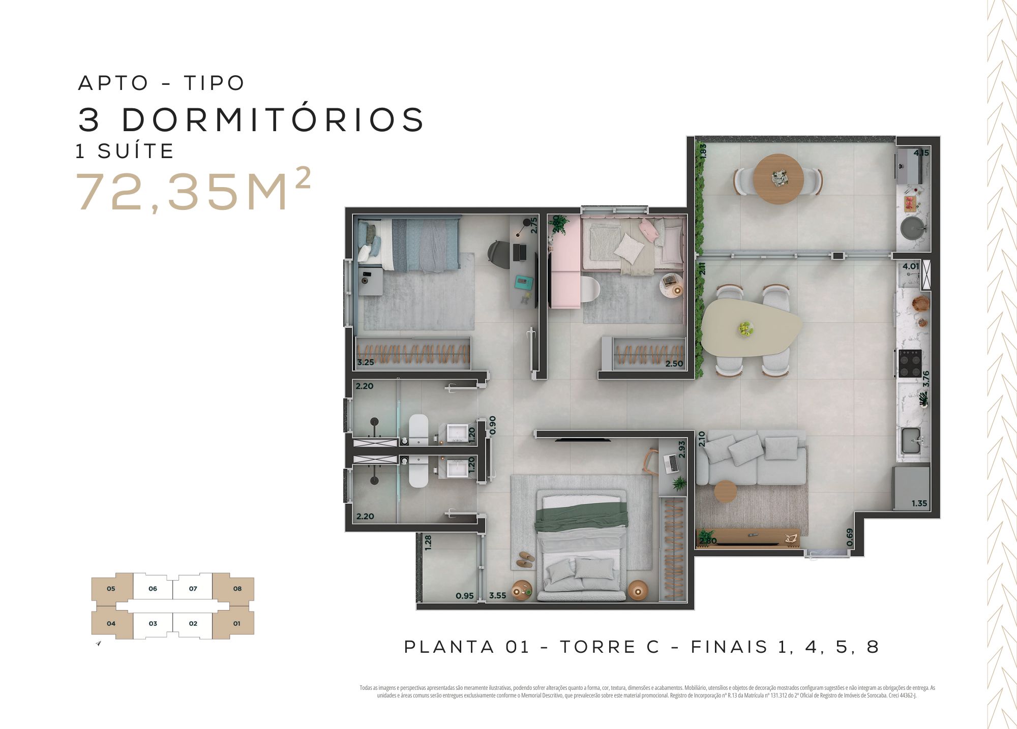 72,35m² – 3 dormitórios, sendo 1 suíte